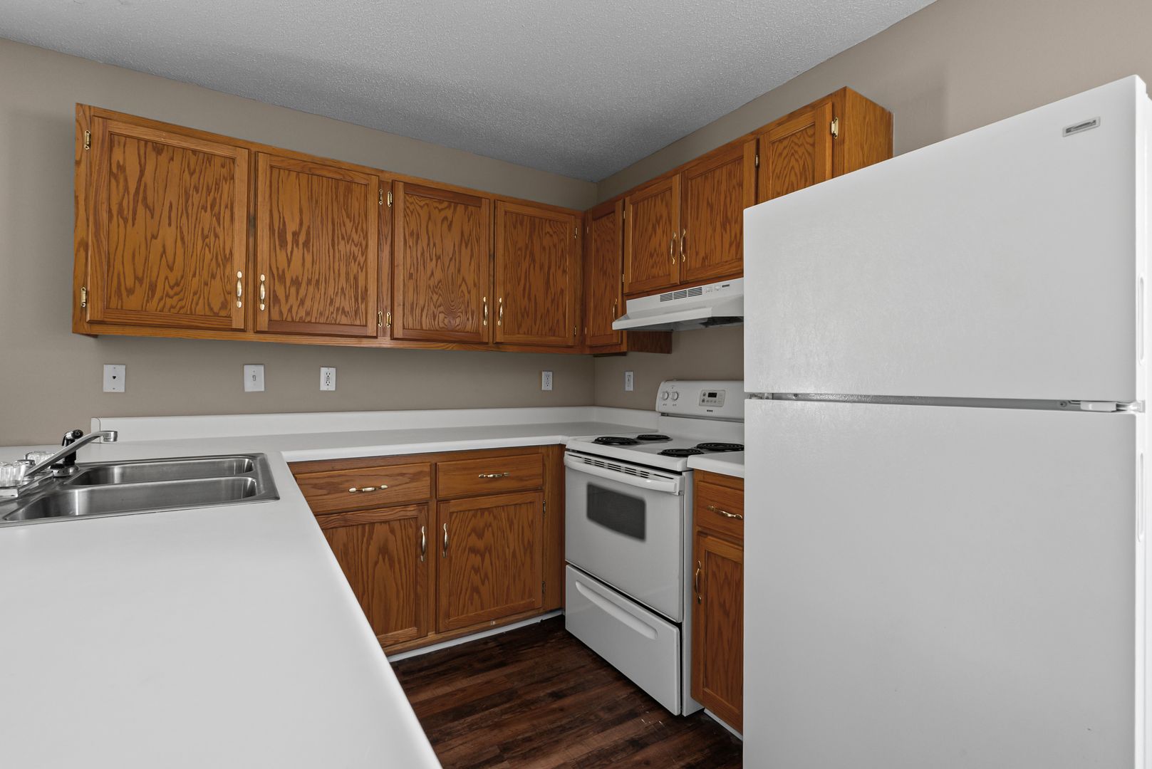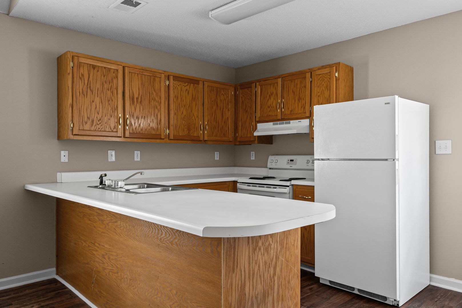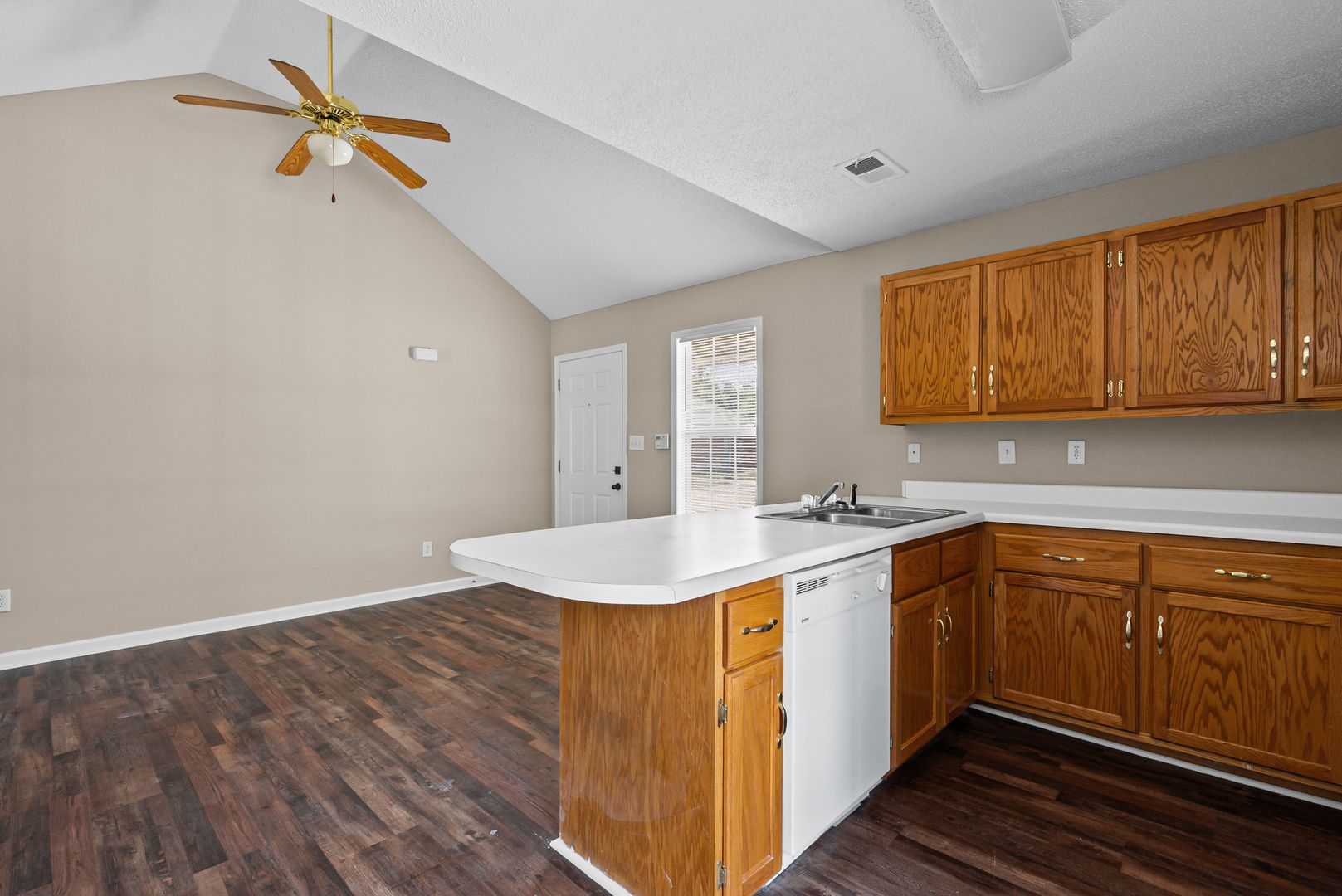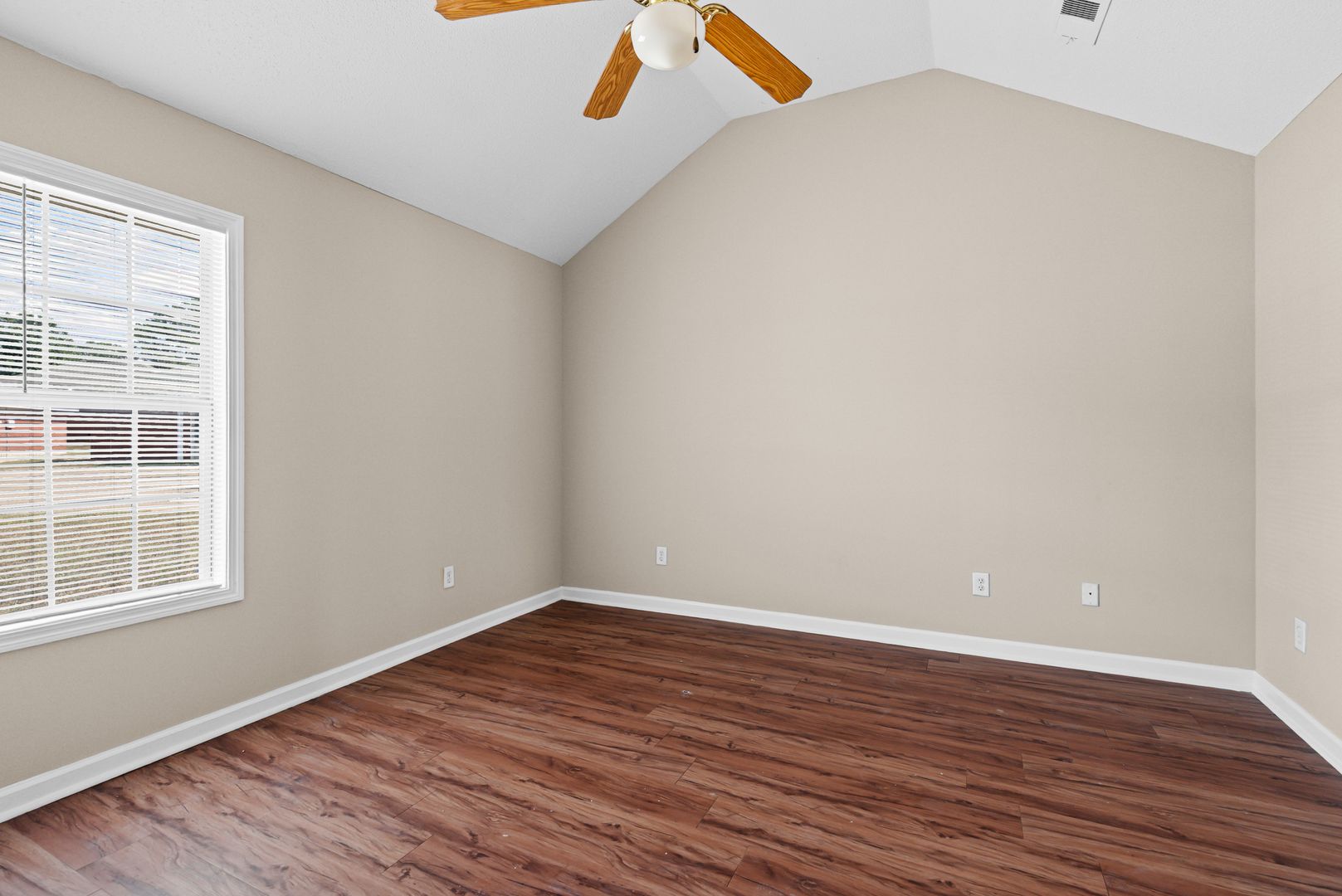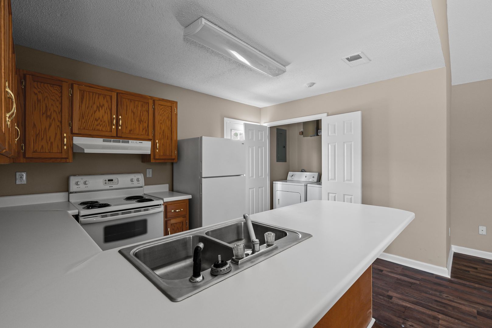 Durable hardwood-style flooring throughout