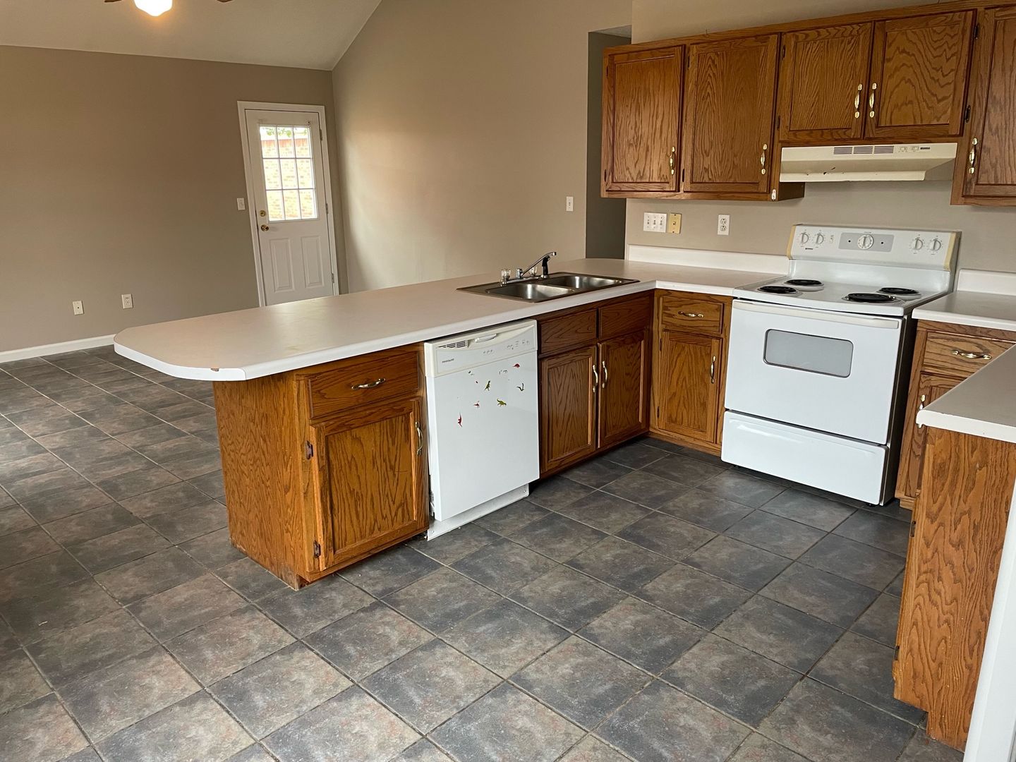 Kitchen appliances: stove, refrigerator, dishwasher, washer/dryer included.